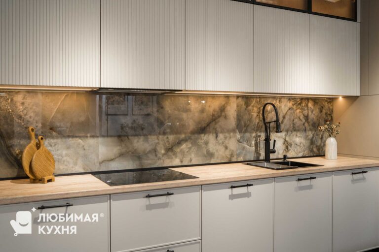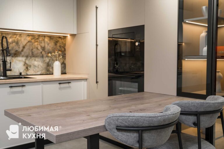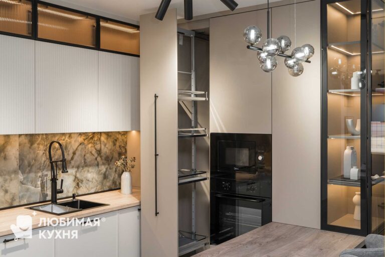 Кухня бестселлер! В ней идеально все — бежево-серые фасады, черная алюминиевая рамка со стеклом, рифленые фасады — кухня мечта! Удачная компоновка обеспечивает легкий доступ ко всему необходимому, благодаря чему готовка превращается в одно удовольствие. Сдержанная палитра цветов и матовые фасады обеспечит легкость в уборке и сдержанность, алюминиевые рамки создадут акцент и придадут легкость конструкции!